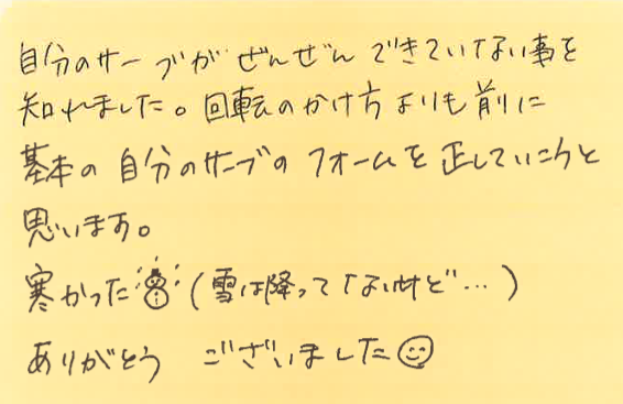 3月10日の京都大会の後に開催した、サーブレッスン。