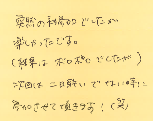 そして、この日、初めて参加してくださった方よりいただいた感想も紹介させていただきます!