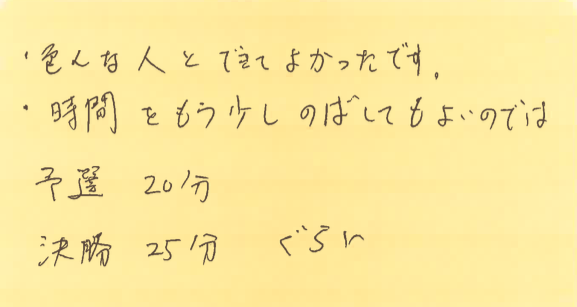 さて、今回は、4月6日と7日に開催した大会の写真と優勝された方のお名前、それと、その日に初めて参加してくださった方よりいただいた感想をご紹介させていただきます!