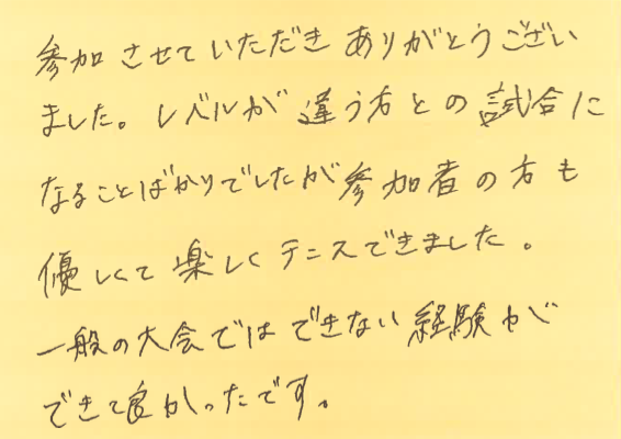 また、皆さんとコートでお会いできる日を楽しみにしております!!