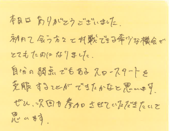 そして、この日、初めて参加してくださった方よりいただいた感想も紹介させていただきます!