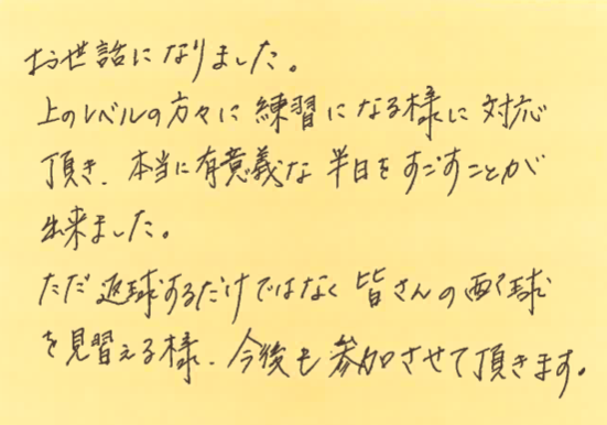 また、皆さんとコートでお会いできる日を楽しみにしております!!