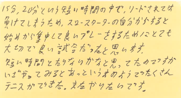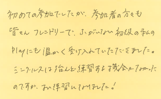 今回は、3月10、31、4月7、21、28日の調布プチシングルス大会に初めて参加された方の感想をシェアさせていただきます!
