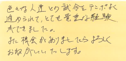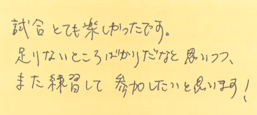 初めて参加された方が、大会を通して何を感じたのか?特に初めて参加しようとしている方の参考にしていただけたらと思います。