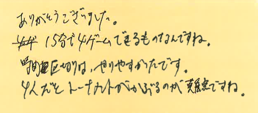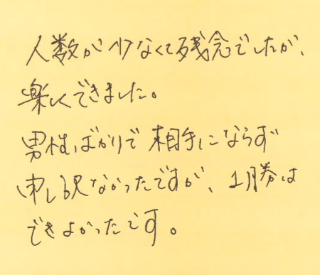 3月10、31、4月7、21、28日の調布プチシングルス大会に初めて参加してくださった方の感想です!