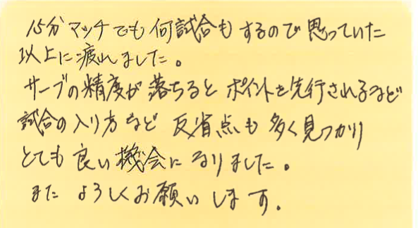 また、皆さんとコートでお会いできる日を楽しみにしております!!