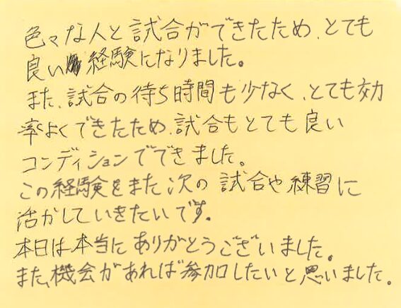 3月9、16、4月6、27日の横浜プチシングルス大会に初めて参加してくださった方の感想です!