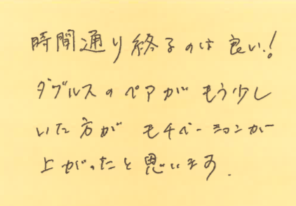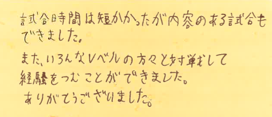 参加してくださった皆さん、突然のコート移動など、快くご対応くださり、ありがとうございました!