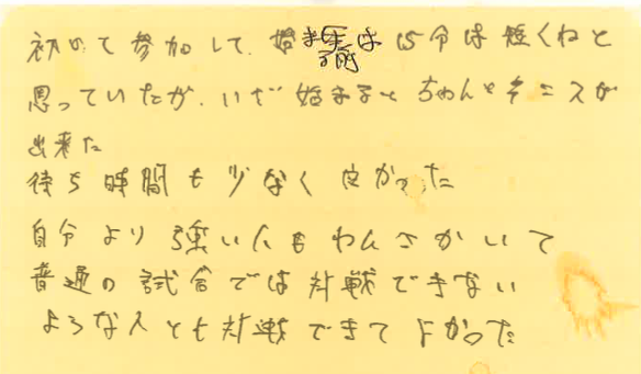 さて、今回は、5月16日から19日に開催した大会の写真と優勝された方のお名前、それと、その日に初めて参加してくださった方よりいただいた感想をご紹介させていただきます!