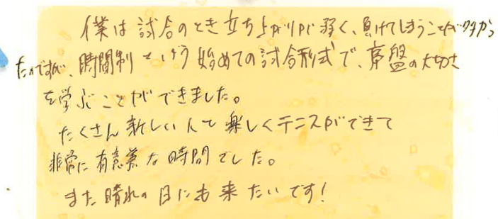 また、皆さんとコートでお会いできる日を楽しみにしております!!