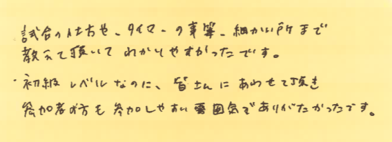 そして、この日、初めて参加してくださった方よりいただいた感想も紹介させていただきます!