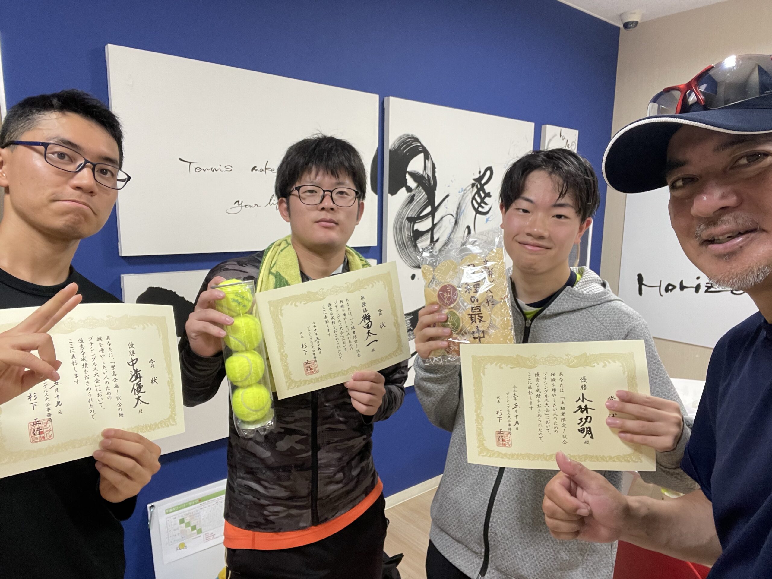 さて、そんな中、熱い戦いが繰り広げられ、最終的に優勝したのは、シングルスは私、ダブルスは、斎藤選手・村山選手組でした!