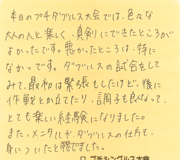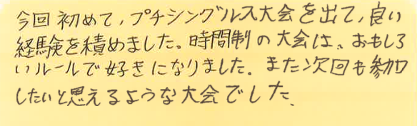 5月25日と26日のプチシングルス大会・プチダブルス大会の写真と優勝者のご紹介、そして感想です!