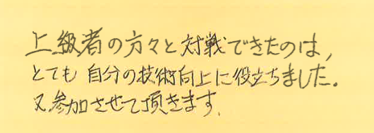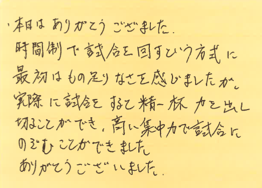 さて、今回は、7月3日から7日に開催した大会の写真と優勝された方のお名前、それと、その日に初めて参加してくださった方よりいただいた感想をご紹介させていただきます!