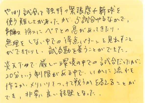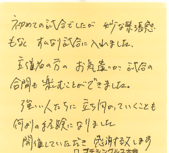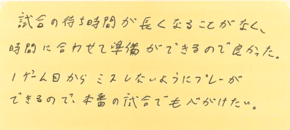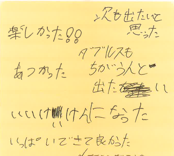 シングルスは、なかなかのレベルでの戦いとなり、とても質の高い試合経験を積んでいただけました!