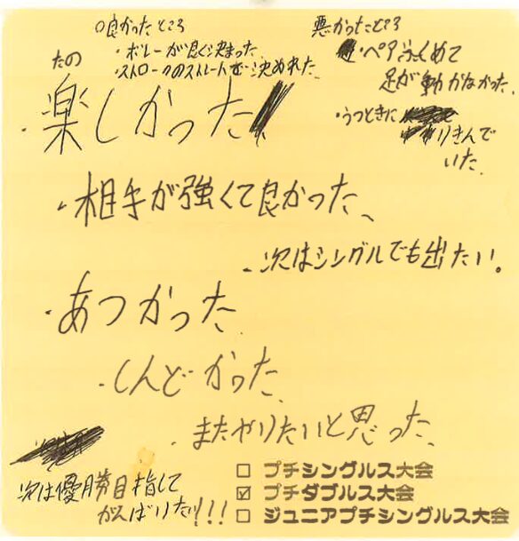 7月3日から7日にかけてのプチシングルス大会・プチダブルス大会の写真と優勝者のご紹介、そして感想です!