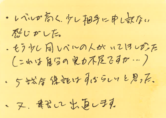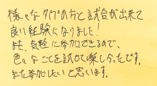 さて、今回は、9月1日と4日に開催した大会の写真と優勝された方のお名前、それと、その日に初めて参加してくださった方よりいただいた感想をご紹介させていただきます!