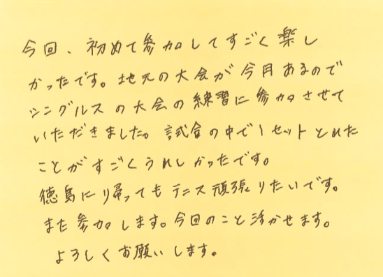また、皆さんとコートでお会いできる日を楽しみにしております!!