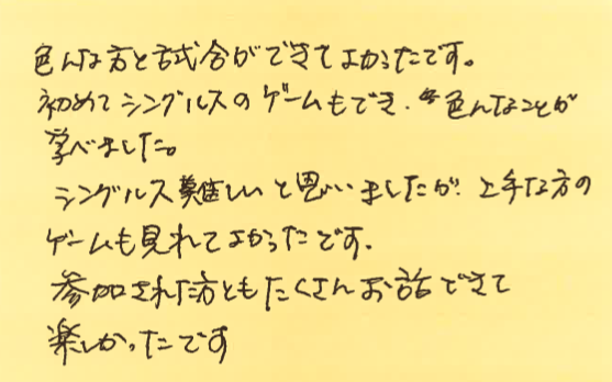しかも、シングルスはほとんどの方が上級者クラスで、かなり激しいラリーの応酬が展開されました!