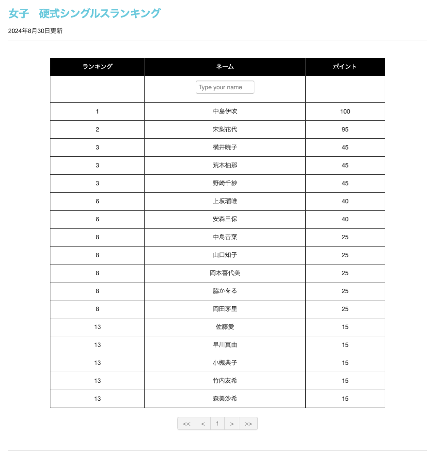 それと、女子のランキングに載っている人数自体が、非常に少ないので、女性の皆さん、