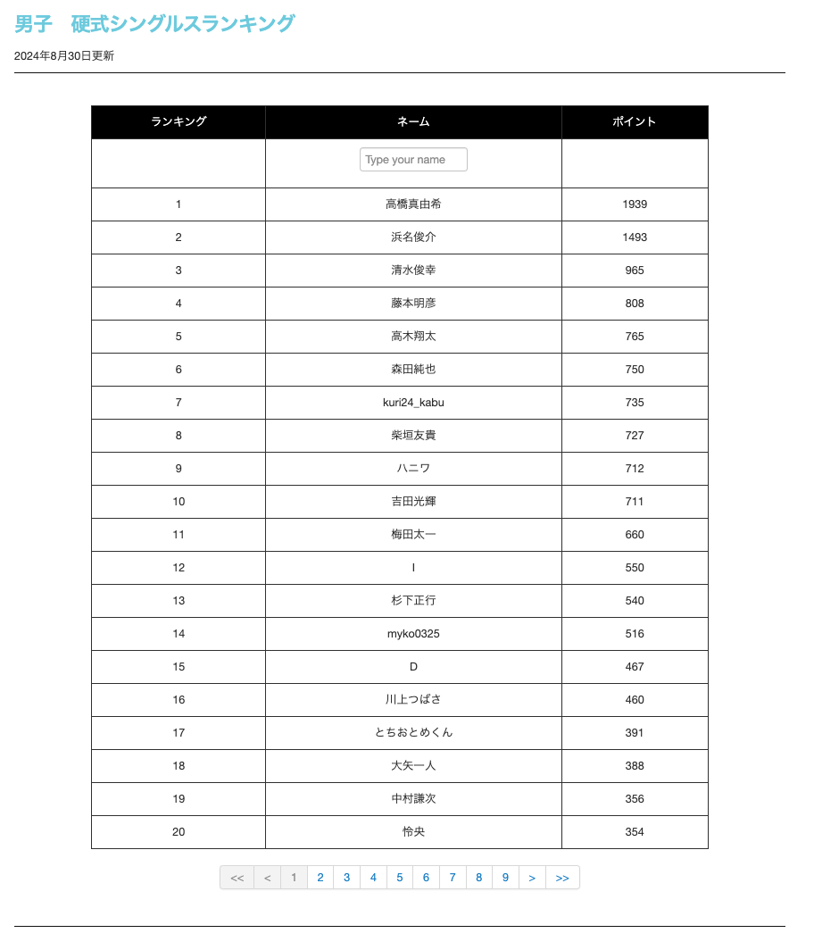 ・・・が、見に行かない方もいらっしゃると思いますので、最新のランキングの中から、まずは男子のシングルストップ20!!