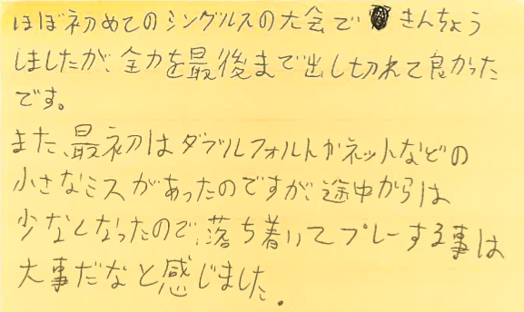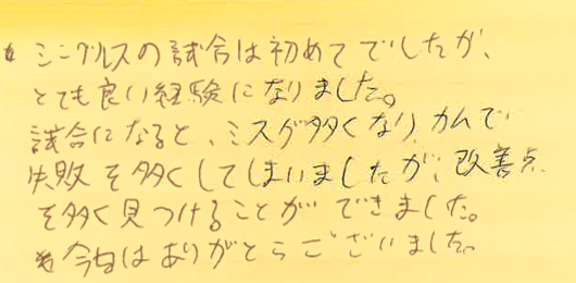 7月7、14、21、28日の調布プチシングルス大会に初めて参加してくださった方の感想です!