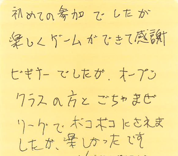 初めて参加された方が、大会を通して何を感じたのか?特に初めて参加しようとしている方の参考にしていただけたらと思います。