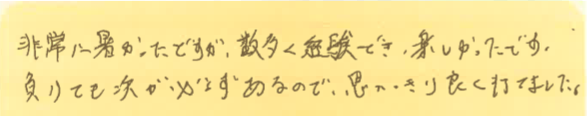 今回は、7月7、14、21、28日の調布プチシングルス大会に初めて参加された方の感想をシェアさせていただきます!