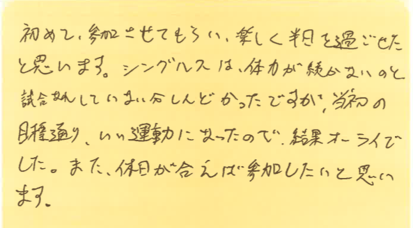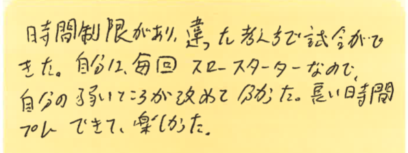 遠方から参加された方もいたりして、とても和やかでありながらコートの中では激しい戦いが繰り広げられました!