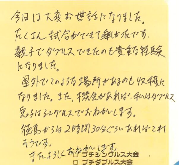 なんと、今回でプチシングルス大会への参戦、400回だったそうです!