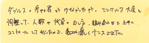 優勝は、シングルスは梅田選手、ダブルスは、山田選手・松田選手組でした!