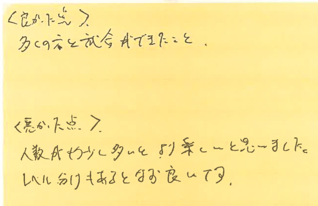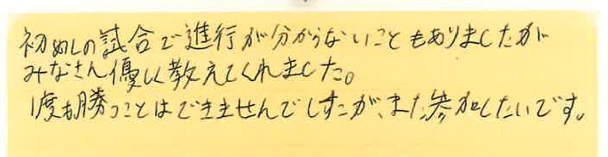 今回は、10月14日の松戸プチシングルス大会に初めて参加された方の感想をシェアさせていただきます!