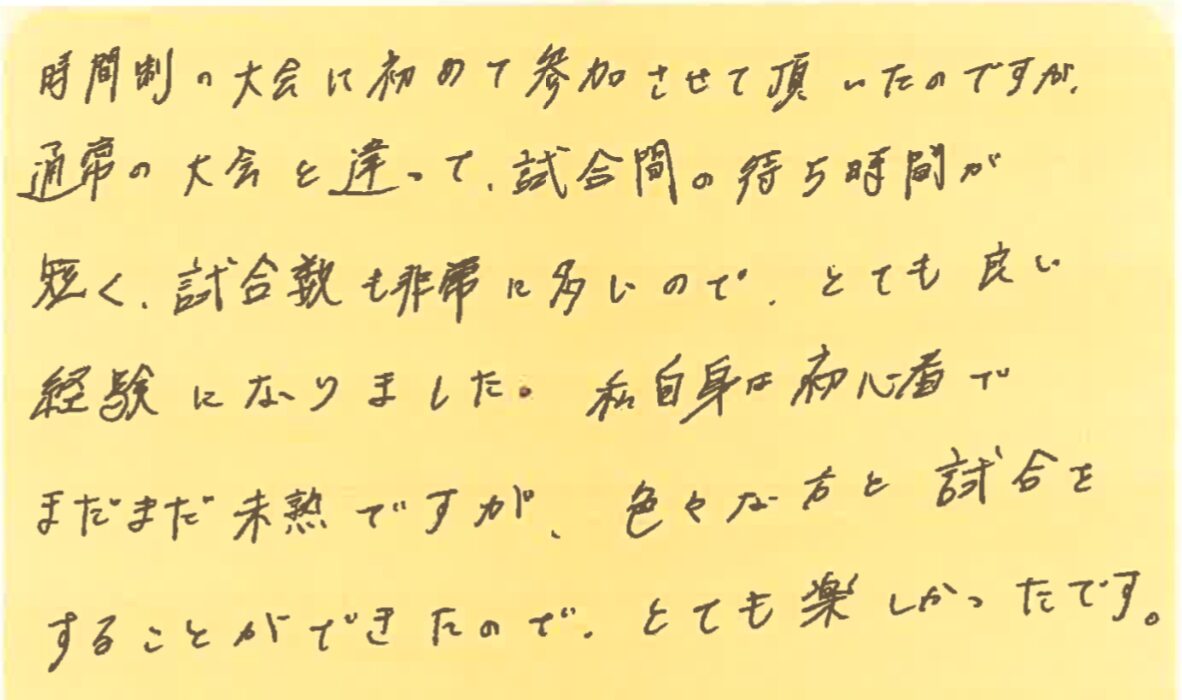この日は珍しくほぼ全員が初参加という大会となりました。