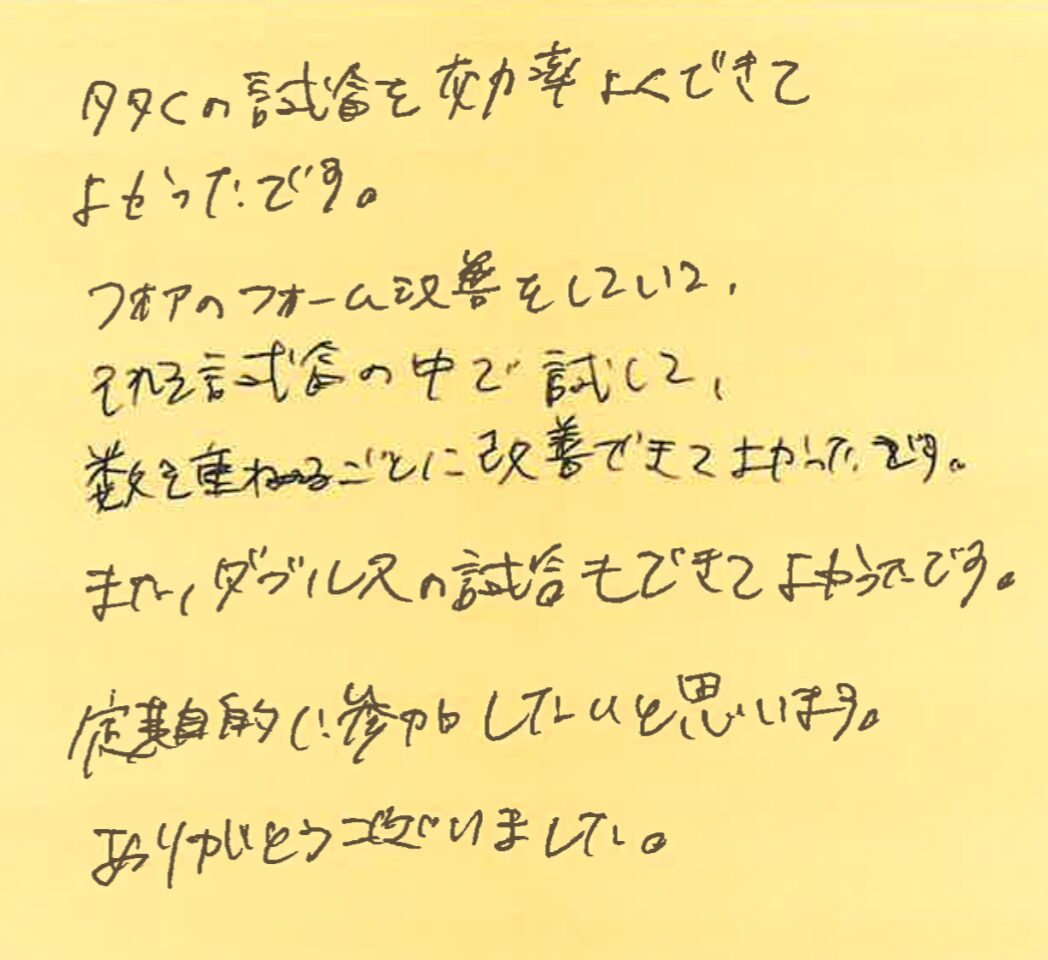 また、皆さんとコートでお会いできる日を楽しみにしております!!