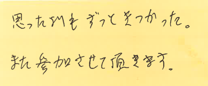 そして、この日、初めて参加してくださった方よりいただいた感想も紹介させていただきます!