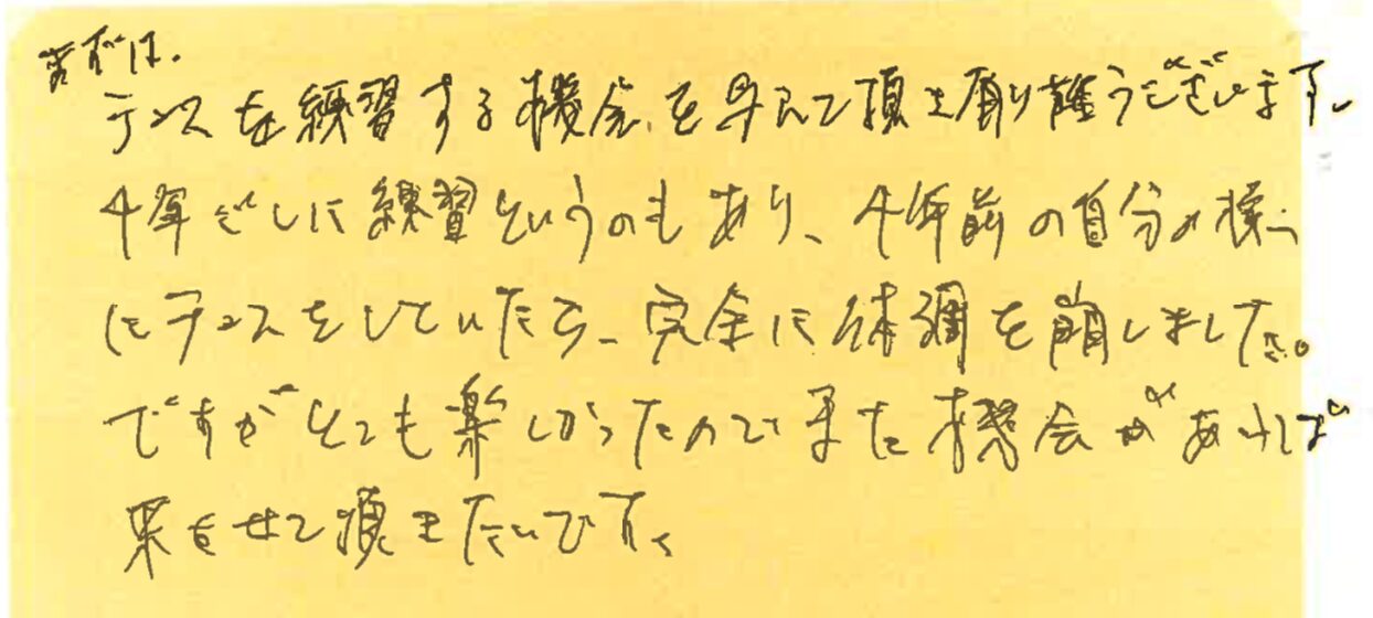 また、皆さんとコートでお会いできる日を楽しみにしております!!