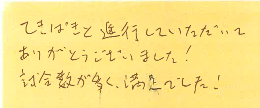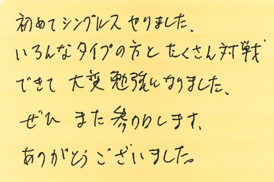 9月8、15、22、29日の調布プチシングルス大会に初めて参加してくださった方の感想です!