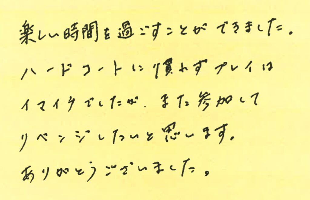 また、皆さんとコートでお会いできる日を楽しみにしております!!