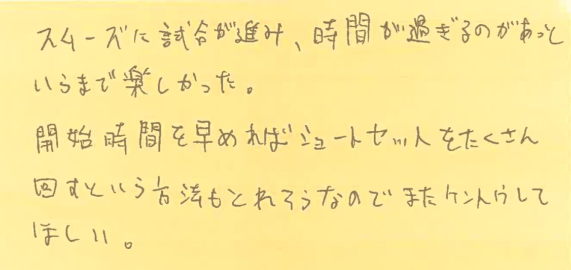 10月6、13、20日の調布プチシングルス大会に初めて参加してくださった方の感想です!