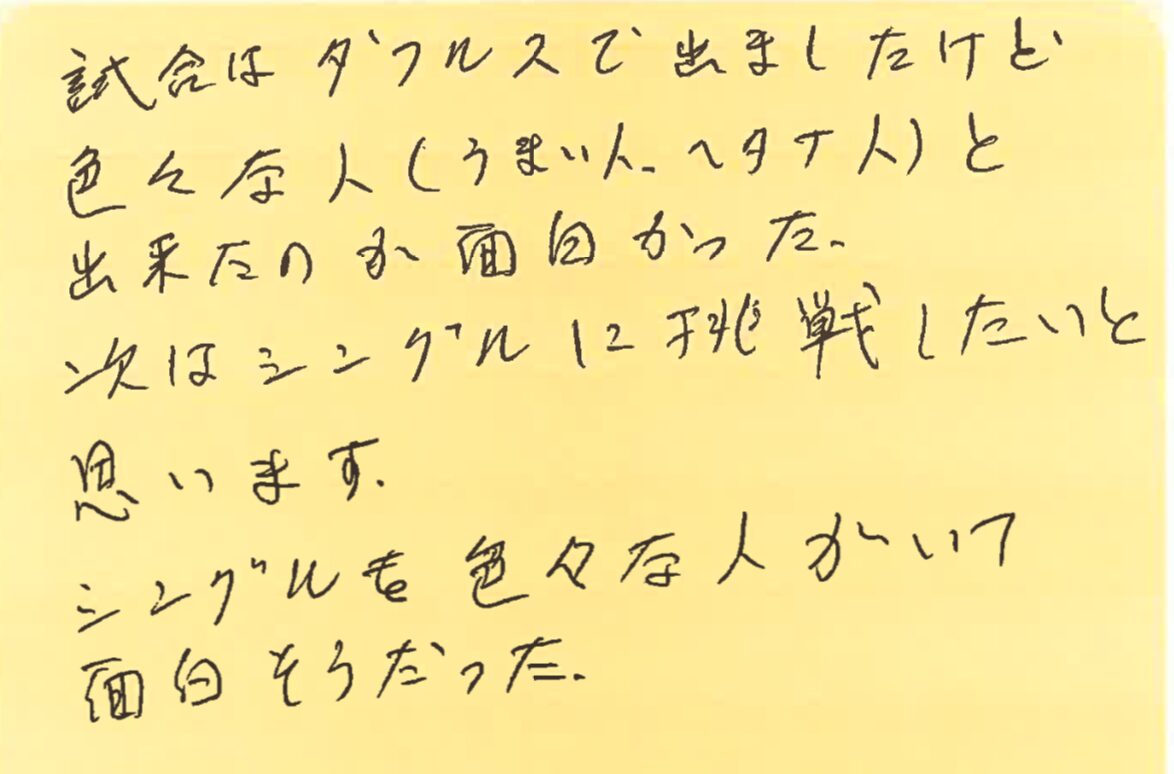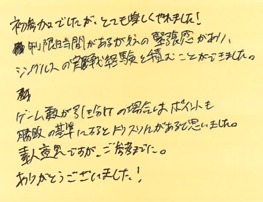 この日は、シングルスもダブルスもたくさん参加してくださり、かなり盛り上がりました!!