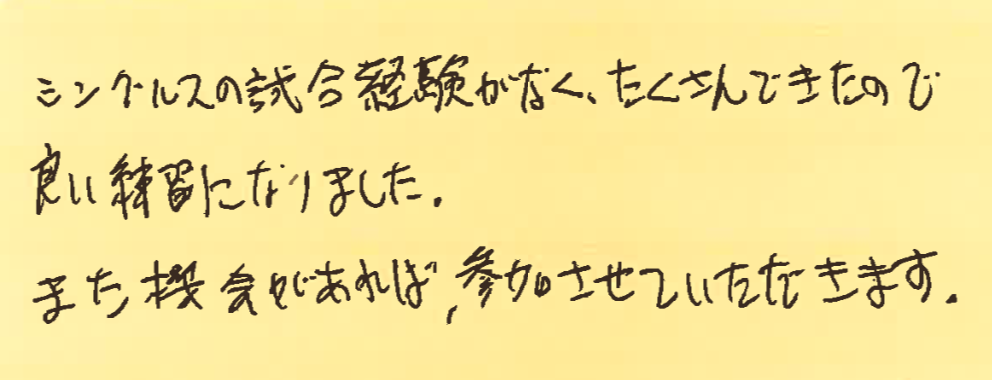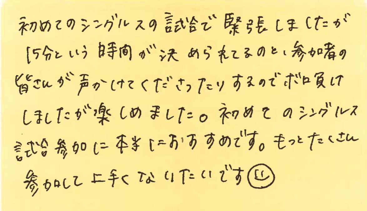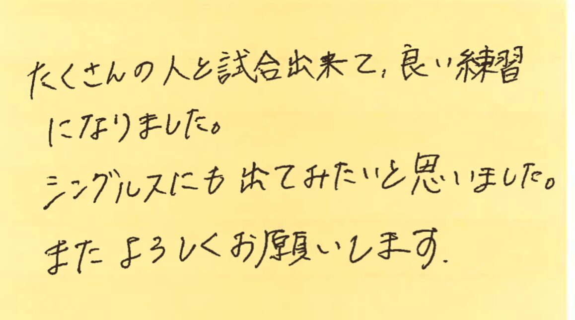 また、皆さんとコートでお会いできる日を楽しみにしております!!