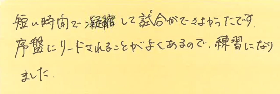 次回の対戦に向け、色々とレベルアップしなければ!!と気持ちを新たにさせていただきました!!