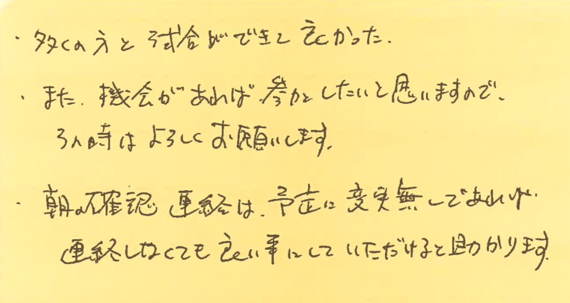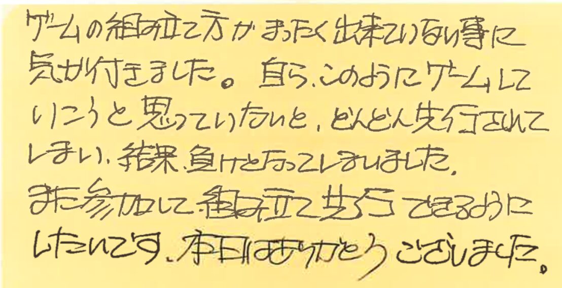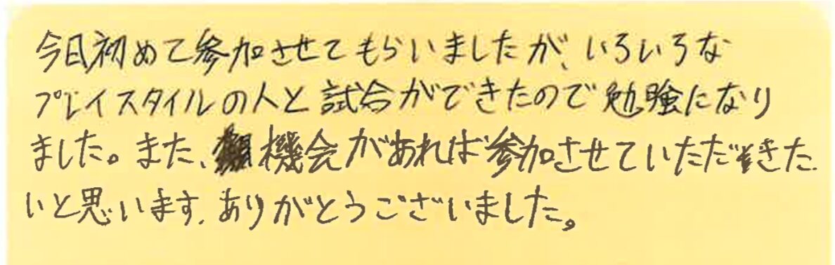 そして、この日、初めて参加してくださった方よりいただいた感想も紹介させていただきます!