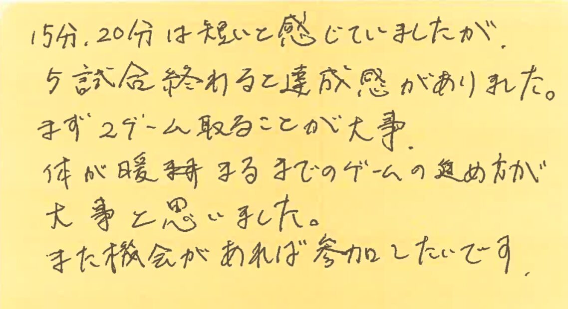 コートの関係で、少人数での開催となりましたが、しっかりとお楽しみいただけたことと思います!