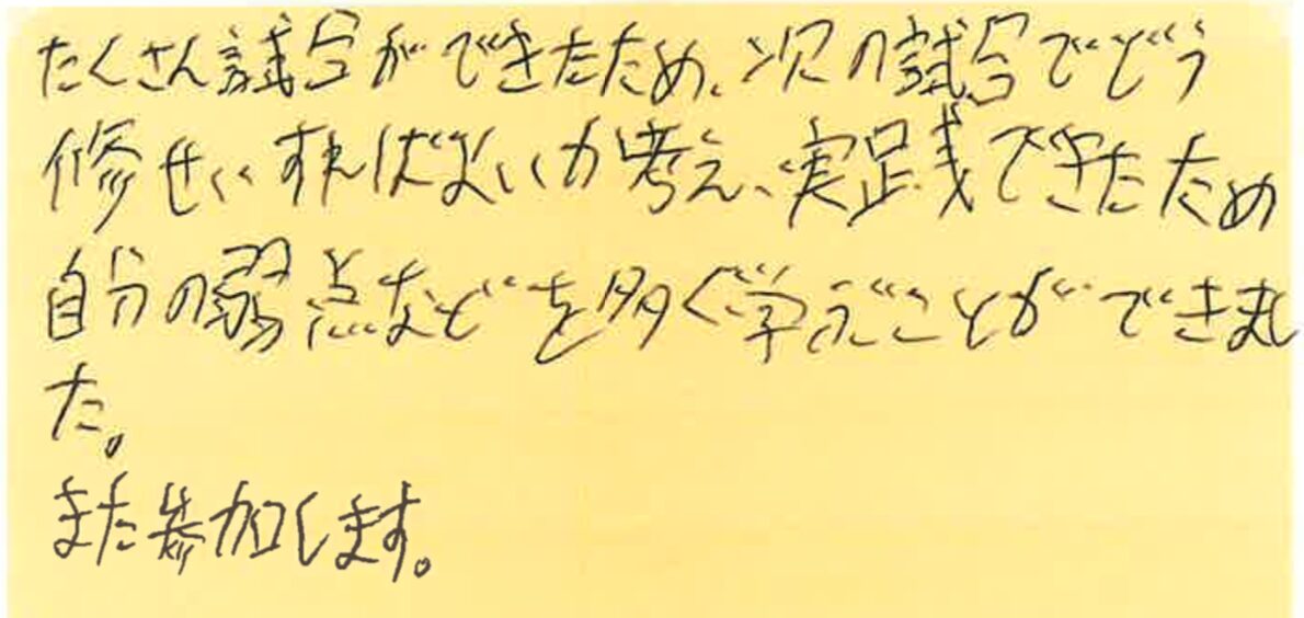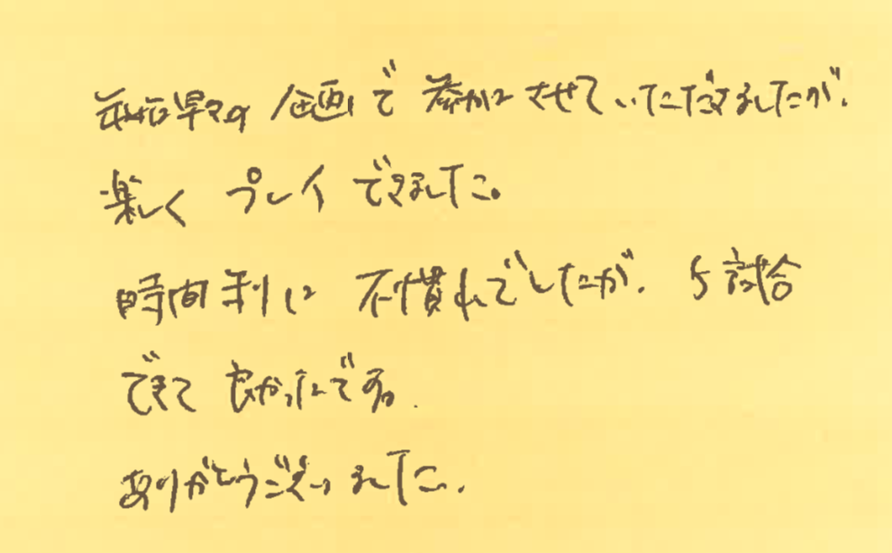 また、皆さんとコートでお会いできる日を楽しみにしております!!