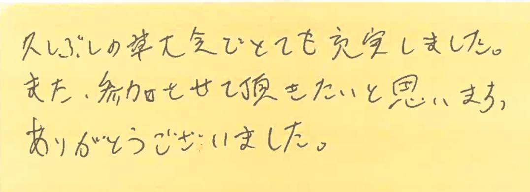 そして、この日、初めて参加してくださった方よりいただいた感想も紹介させていただきます!
