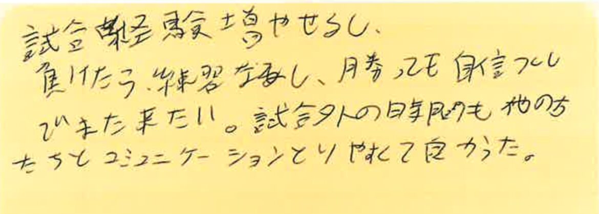 また、皆さんとコートでお会いできる日を楽しみにしております!!