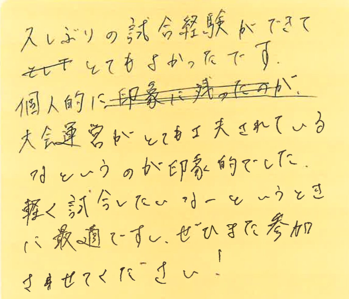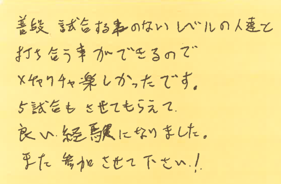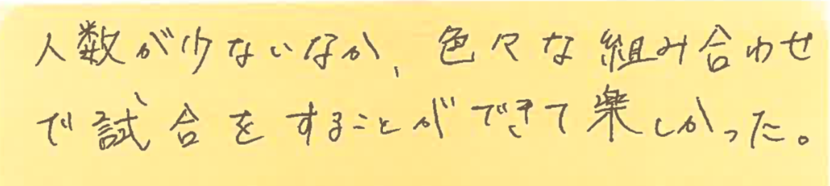 終始和気藹々とした雰囲気の中、大会が進行したのですが、この日はインターハイ出場経験者が2名もおり、なかなかハイレベルな日となりました!