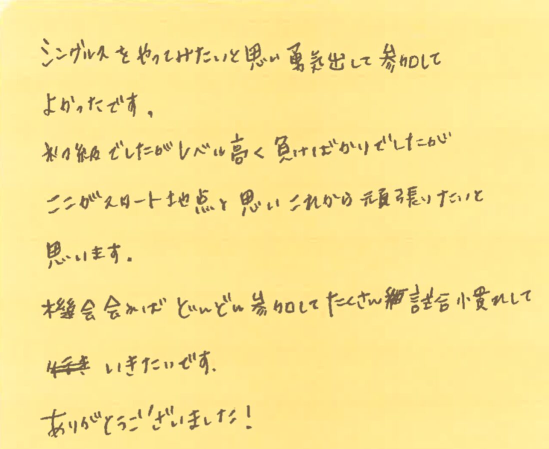 また、皆さんとコートでお会いできる日を楽しみにしております!!