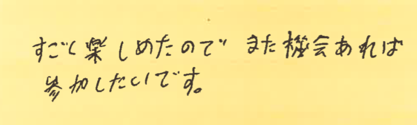 そして、この日、初めて参加してくださった方よりいただいた感想も紹介させていただきます!